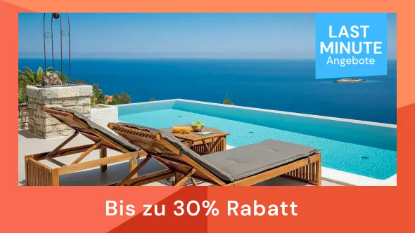 Plötzlich akute Urlaubslust? Dann ist jetzt der richtige Moment für Last Minute Urlaub im Ferienhaus. Einfach ein Ferienhaus oder eine Ferienwohnung mit Anreise innerhalb der nächsten 6 Wochen buchen und bis zu 30%* sparen.